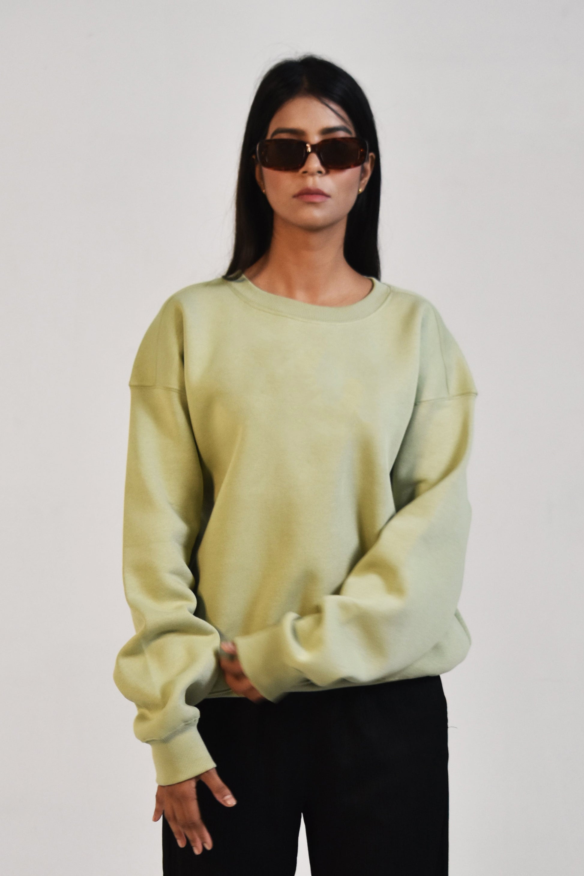 Upgrade your wardrobe with our Relaxed Fit Sweatshirt in Pista Green. The relaxed fit provides optimal comfort and versatility, while the pista green color adds a touch of sophistication. Made with high-quality material, this sweatshirt is perfect for any occasion. Don't settle for anything less than the best.